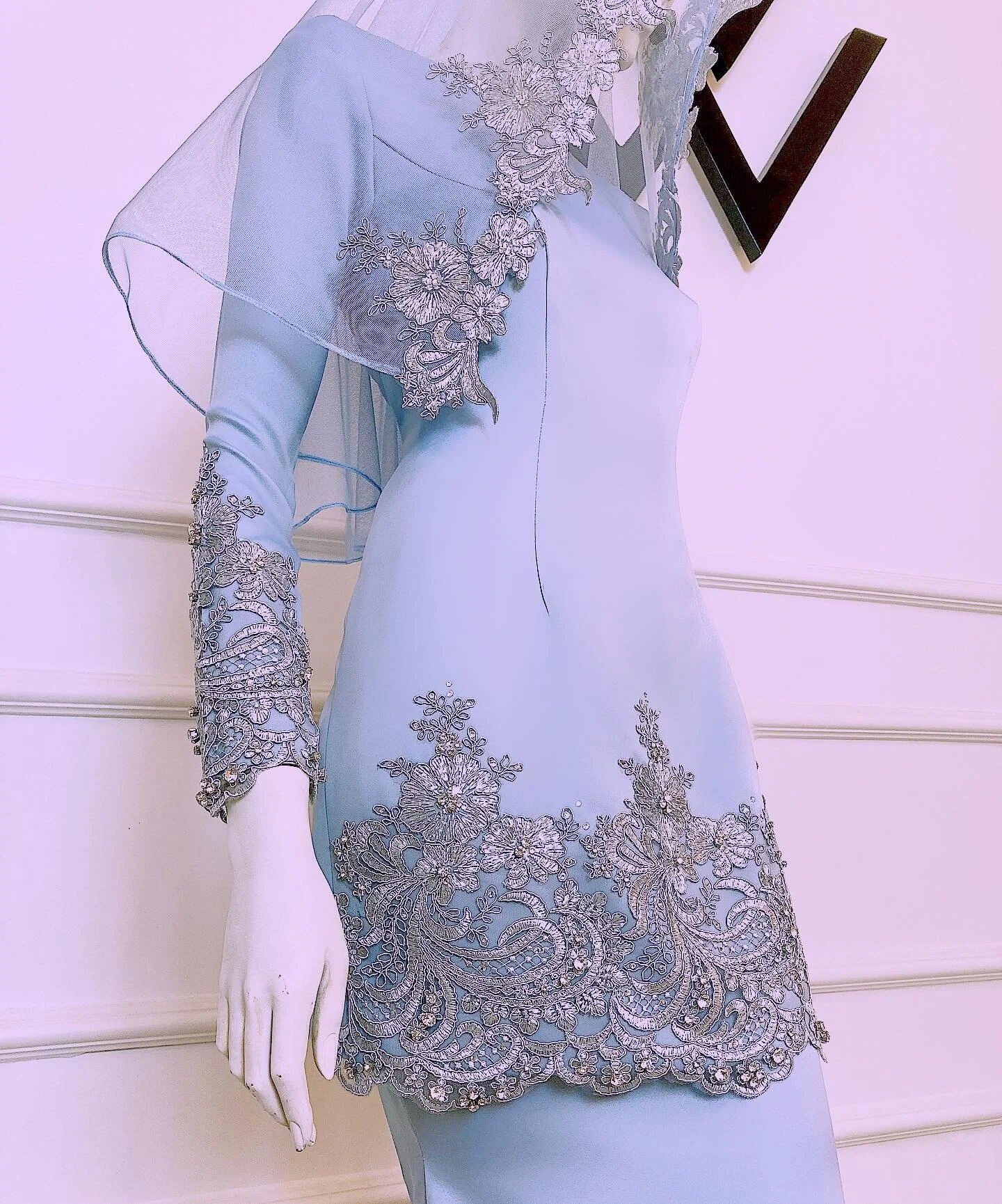 . Baju kawin baby blue baby blue wedding dresses. August 3 at 255 pm. Beaunique baju pengantin long sleeve winter floral bead muslimah wedding dress.
